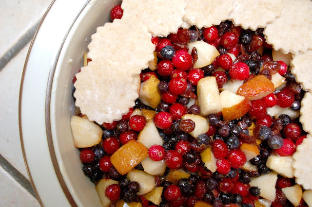 5. Lay the crust shapes onto the top of the fruit mix, overlapping them just a bit.